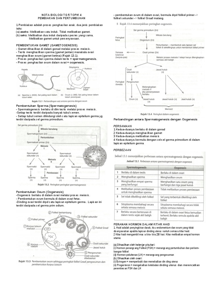 Bio T5 Topik 4 Pembiakan Edit Nota Pdf
